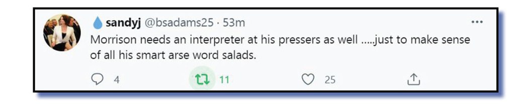 There’s sandyj aka @bsadams25 who knows a word salad when it’s leaping out of the TV screen at her.