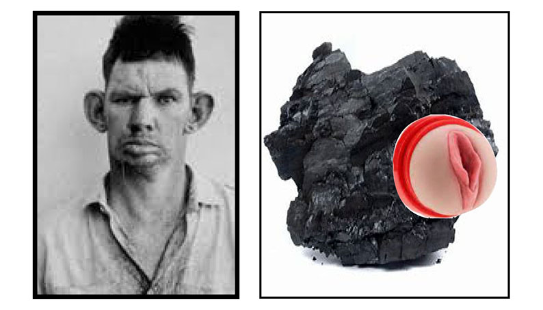 He then stood up and a large lump of high-quality bituminous coal from Queensland’s Bowen Basin, complete with an artificial vagina borrowed from a former girlfriend, appeared on screen.