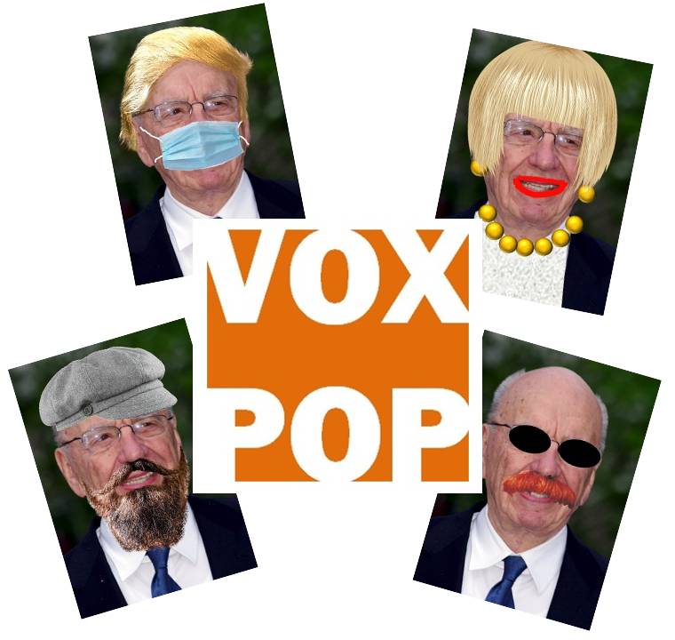 RuPert – 90, drag queen, visiting from New York: “For a man of his age Mr Murdoch looks like he is sensationally fit and virile, don’t I? I mean doesn’t he? He could leave his massive market dominance under my bed any night.”