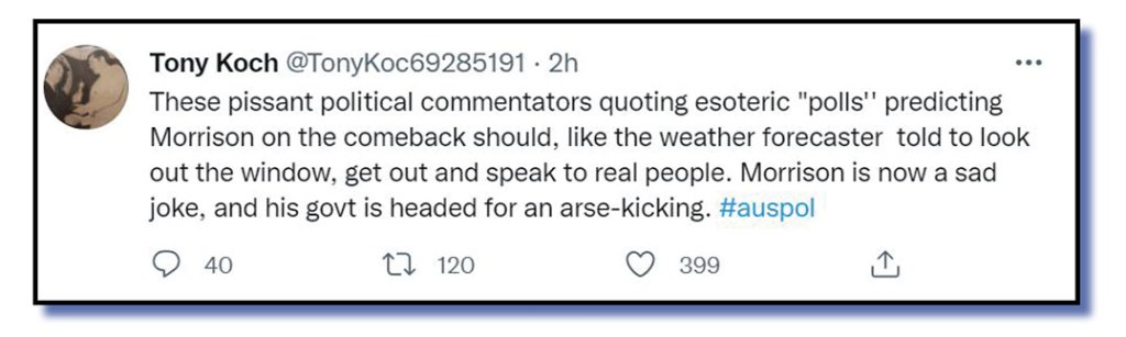 An old journo mate prompted the question when he posted a tweet about the findings of the monthly Resolve Political Monitor poll for The Sydney Morning Herald.