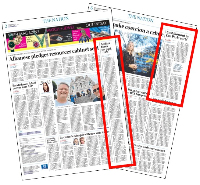One task our MGH analysis teams could determine before being sent home to recuperate from stress, was a comparison of the response to the Four Corners episode and the reporting in News Corp Australia outlets of the blatant political rorting by the Morrison Government of taxpayer funds from the $660 million fund designed to build car parks at railway stations to cut congestion.
