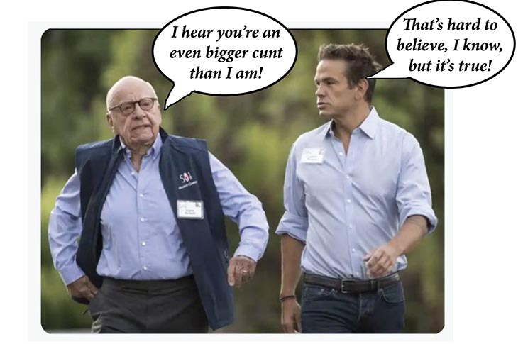 Keep shoving them in until that awful cunt realises that organisations such as Pox News, the dreadful imitation Sky News Australia and the whole fucking shebang of the Dirty Diggers’ appalling shitsheets are in no position to have a go at the ABC over anything.