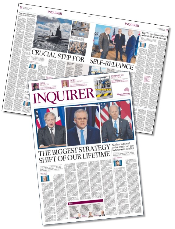 “This AUKUS announcement has the potential to soak up thousands of hectares of newsprint to accommodate the views of all these very important columnists and commentators whose opinions we clearly can’t do without.