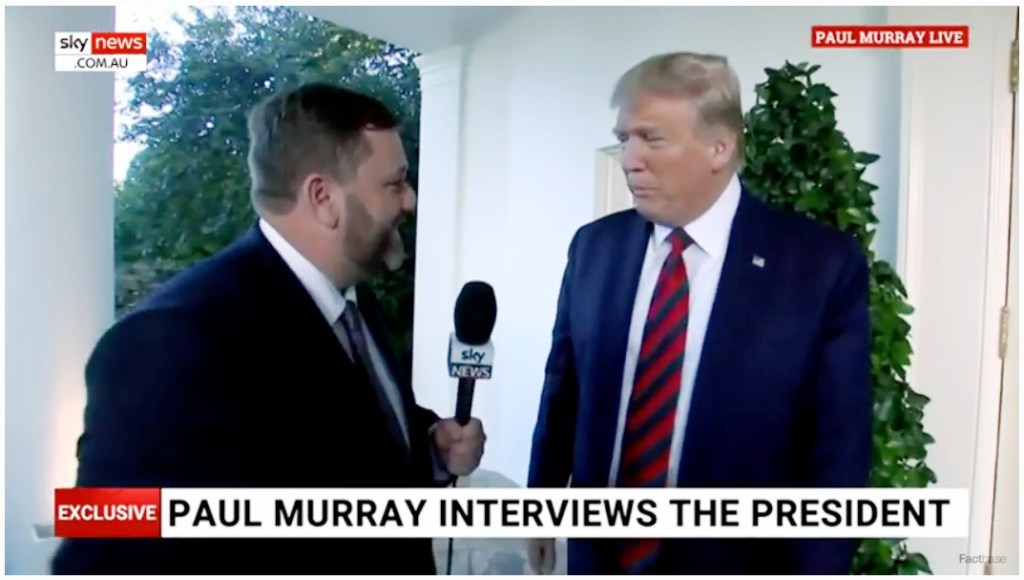 Mr Murray said the story ignored the fact that he had interviewed Mr Trump at the White House in September 2019. (pictured)