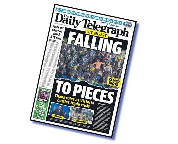 Poor old Melbourne gets a little shaken up by a midrange earthquake and, just under 900km north-east away in Sydney, in Holt Street to be exact, the wizards that run the Torygraph came up with the front cover at top.