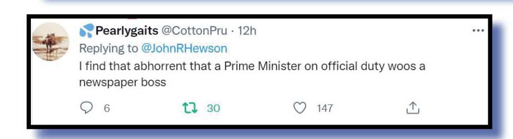 Another two very pointed tweets that we enjoyed were these offerings from Robyn @robynbryant33 and Susan R-O @SReesOsborne …