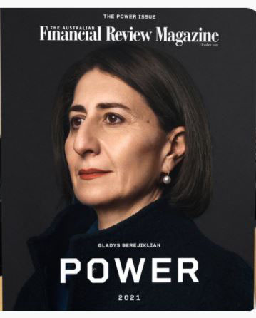 Many might see Our Glad as someone tarnished significantly by her humiliating, too-late, about-face on just how deadly and infectious the Delta strain of the pandemic. But not the AFR: she’s a dynamic leader at the top of her game, totally in control, possibly the best politician this or any other country has ever produced! GO GLADYS!! And she did!