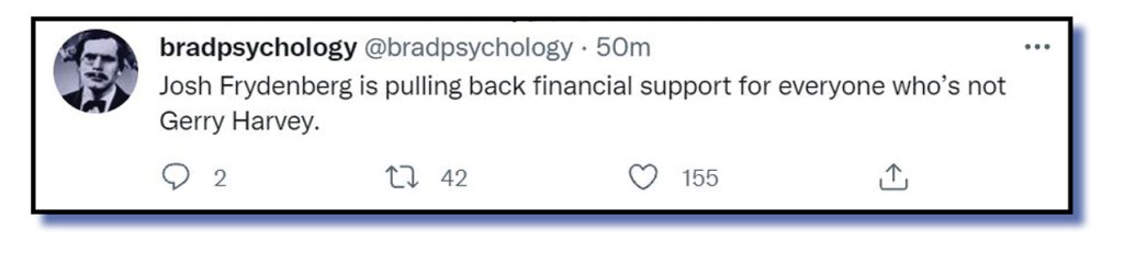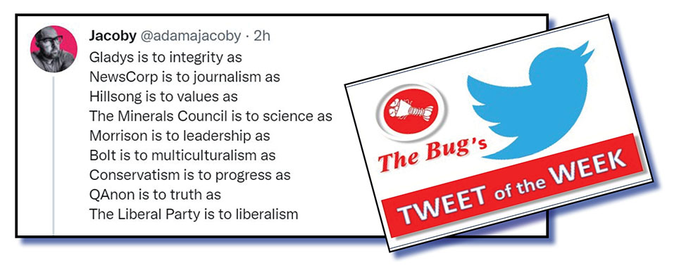 Our preference for tweets that attack our Prime Minister Scott Morrison and his ministry of morons, mugs and misfits has been blatant and unforgiveable. From now on, we are going to strive to present a fairer, more balanced and more professional …. hey, only joking!