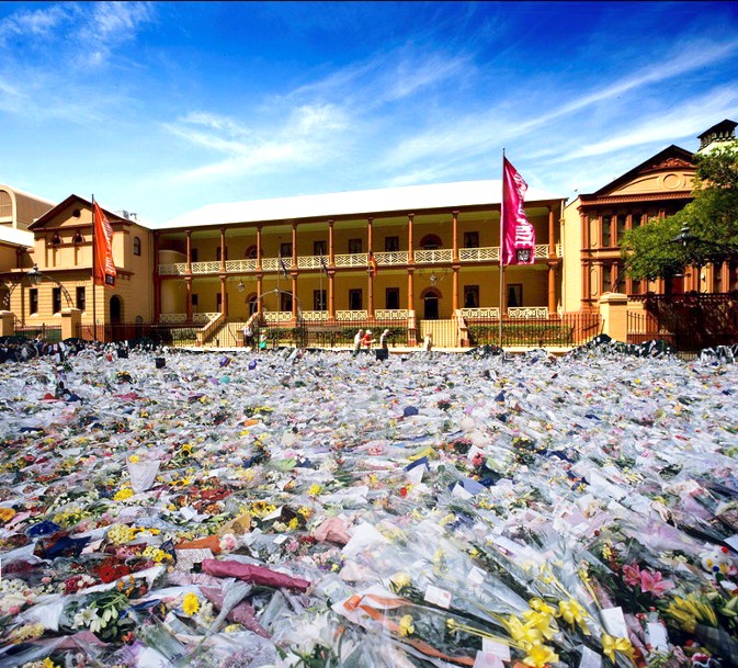 The sea of flowers soon spread throughout the CBD and across the Sydney Harbor Bridge, falling onto trains lines which also caused disruption to the metropolitan rail network which soon spread to nearby regions.