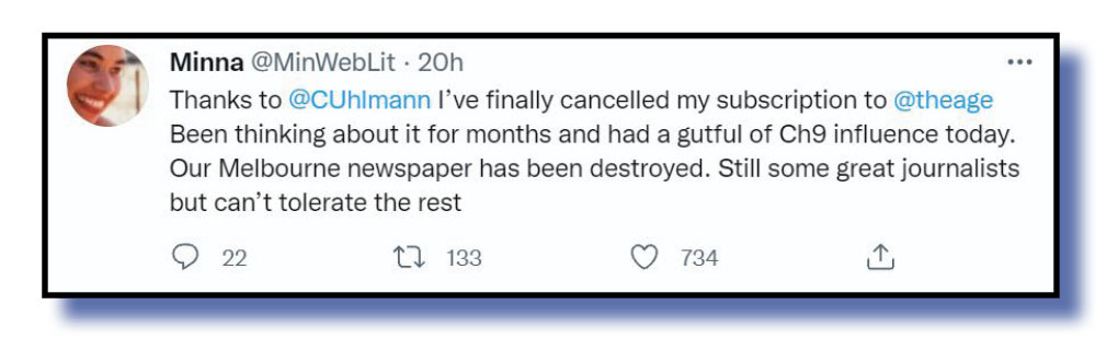 Youse Buggers also know we love tweets about the sad, not-so-slow drift to the right of just about all the other sectors of the mainstream mediocre as they try to emulate non standard-bearer Newscorpse.
