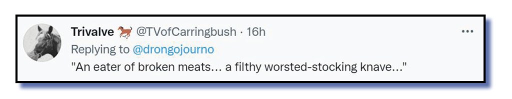 The Bug thanks Trivalve for the extra words shown below and used above. They came to us during a Titterverse exchange among like-minded folk searching for apt descriptions for Smoko Morrison but the language sounded so Lord Downer, don’t you think? We certainly did.