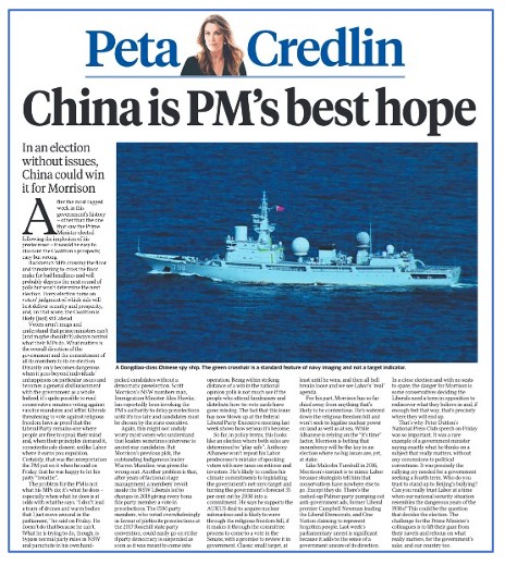 Which brings us to Peta Credlin who openly labelled Dutton’s comments as blatant vote-sucking election tactics in her weekend column run in News Crap turdbloids across the nation. (pictured)