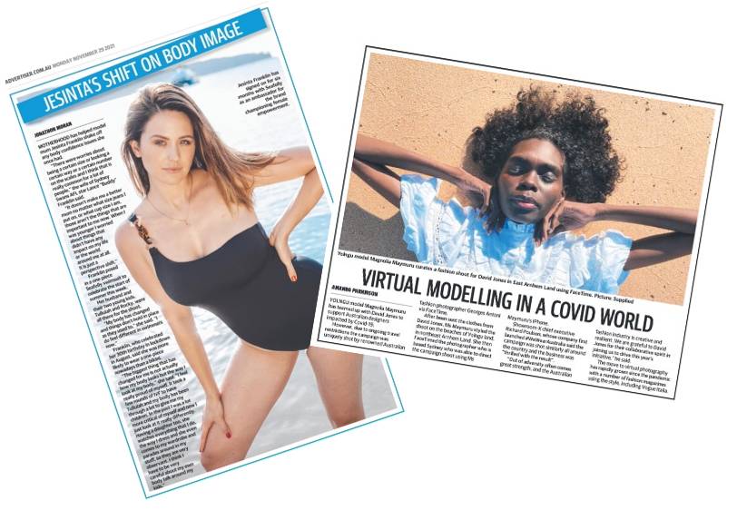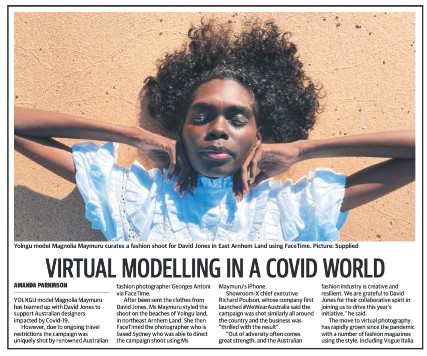 It seems she modelled the clothes on an Arnhem Land beach but the snaps were taken remotely by a photographer isolated because of COVID-19 pandemic restrictions. (pictured)