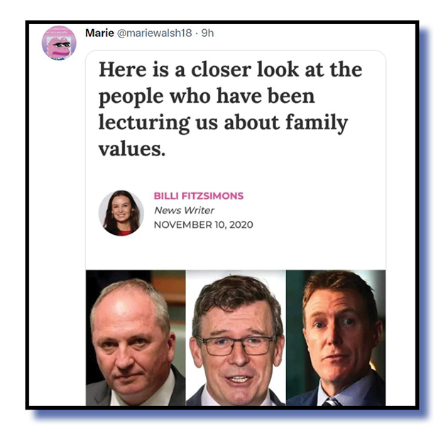 And on the subject of family values and their importance to all members of the Liberal and National Parties, Marie @mariewalsh18 offered this….