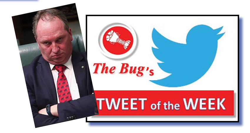 Deputy Prime Minister Barnaby Joyce is likely to be the second-best thing going for Labor at next year’s federal election and for that biased reason alone, The Bug‘s judges simply had to give this contribution from Ian Gale @iggy648 its blue riband tweet of the week sash.
