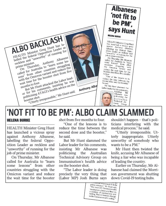 The Melbourne turdbloid the Herald Sun even turned his message into a news story – at right above – with a lead paragraph telling readers (voters) that the PM was offering “a message of hope and optimism to Australians”. The unstated but unmistakable impression is that the alternative PM, Anthony Albanese, isn’t.