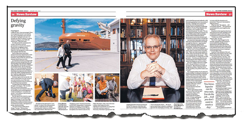 “Although, to be fair, the main one on the front of the News Review section and the other big portrait inside didn’t have a halo over Mr Morrison’s head like his professional photographer normally strives for.