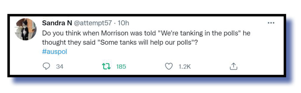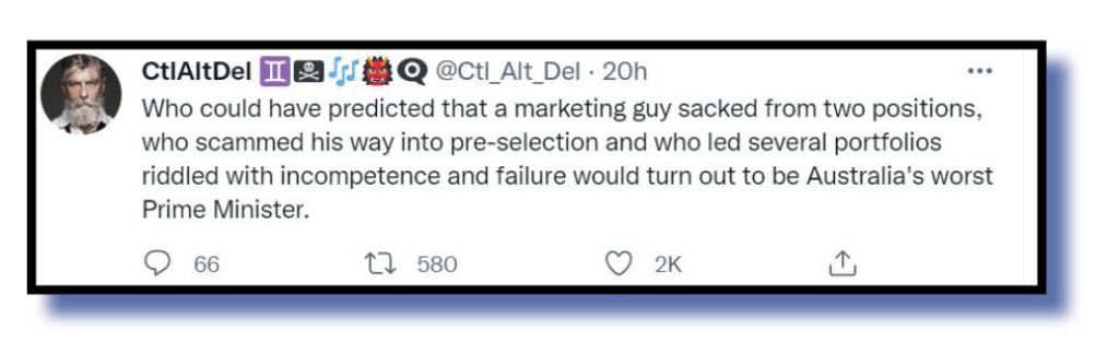 The panel of elite judges that determine The Bug‘s Tweet of the Week never, ever, tire of mentioning that it loves tweets that get stuck personally into Scott Morrison.