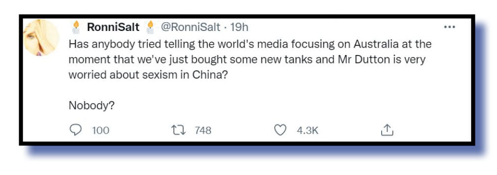 Let’s finish now with a few that just got stuck into Morrison or his ministers in general terms, simply for the stupid things they say or do. Thanks to Marylou M @mimonaghan, Sandra N @attempt57, the confusingly named CtlAltDel etc etc, bloody etc @Ctl_Alt-Del and RonniSalt @RonniSalt