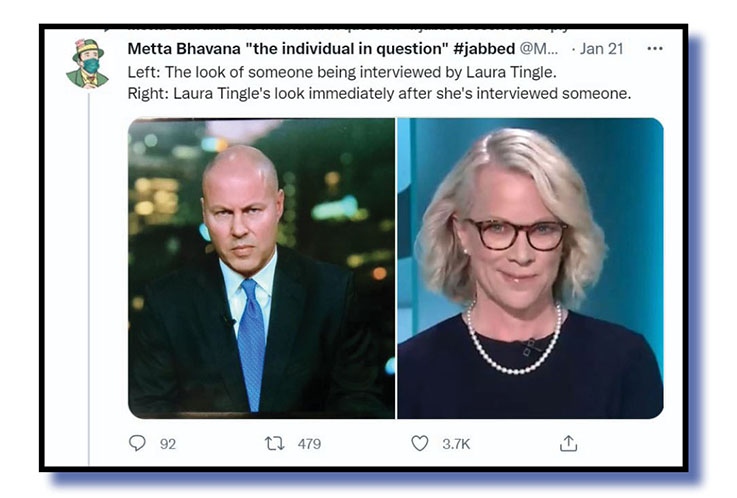 Doesn’t that image of Laura Tingle – one of the few real journalists left in the Australian mainstream mediocre – remind you of the cat that got the cream. And before all you ABC haters whinge about Tingle calling the government’s unannounced $16 billion election war chest corrupt, based on what Morrison and Co. did before the 2019 poll, she’s spot on. If it looks like a duck, etc etc.