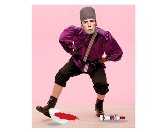 There he was met by Mr Dutton who, dressed as a Cossack (main picture), performed a comical version of a traditional Russian dance while shouting abuse at Mr Pavlovsky and insulting Russia and the Russian people as “fat, hopeless, drunks, drug runners, white slave traffickers, and porn site peddlers”.