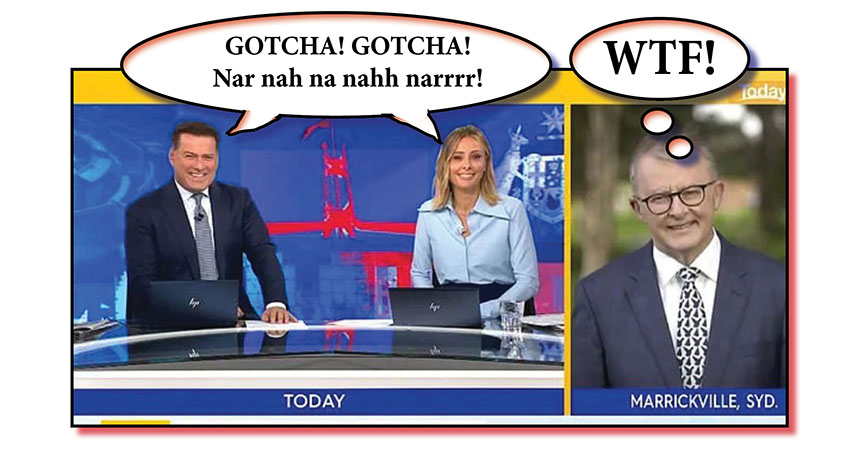 Maybe he needs a bit of Bob Hwake mongrel for the coming campaign. Instead of modestly saying “Ally one; Albo zero”, he should have snarled and told Langdon and Stefanovic: “What a stupid bloody question!” before storming off screen.