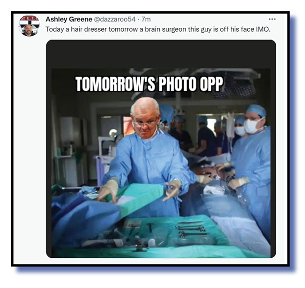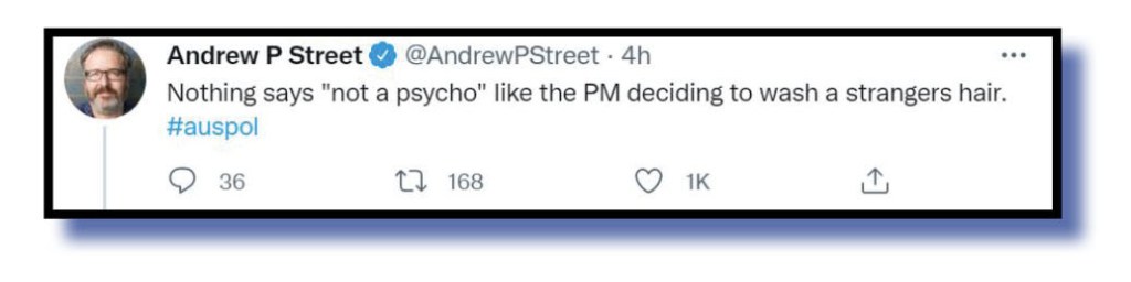 Oh, what a Twitter feast it’s been this past week or so. There were psycho accusations levelled at Smoko Morrison, who in turn set out to prove them pretty much right by staging a bizarre hair-washing photo-op stunt that lit up social mediocre and lost him votes left, right and centre.