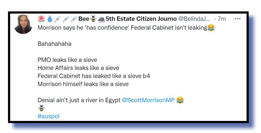 And finally a general observation about the Morrison ministry from Bee etc etc 5th Estate Citizen Jounro @BelindaJ…