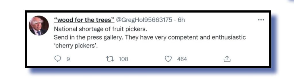 Several others with a media bent were Dr Ingrid M @iMusing and “wood for the trees” @GregHol95663175