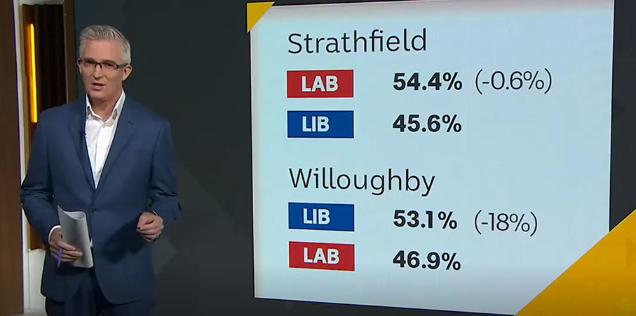 Well, maybe not always. For example, here’s David Speers (below) on ABC Insiders on Sunday running through the results of the four state by-elections in NSW last Saturday.