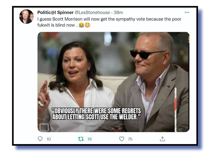 You Buggers are a prescient lot. After that creepy, highly disturbing photo emerged of Scott Morrison washing that poor hair salon employee’s hair, you had some fun as to what would come next.