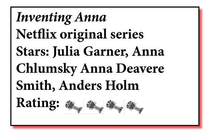 Well, dear reader, seeing I’m terribly late with this review and you might be the last to know, Ruthie – sorry, Julia Garner – has reemerged in a fucking new Netflix show, Inventing Fucking Anna. Sorry, Inventing Anna.