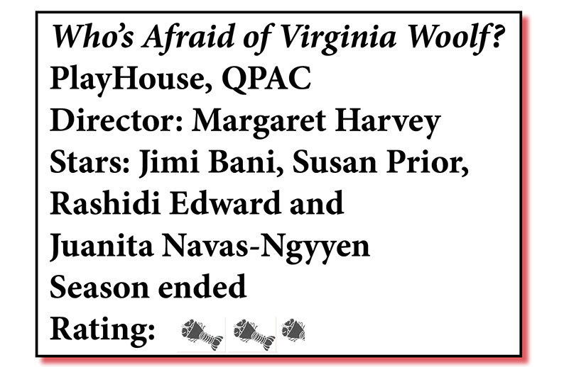 No other theatre production has moved me closer to tears than Friday night’s performance of Who’s Afraid of Virginia Woolf? at the PlayHouse in Brisbane’s Performing Arts Complex.