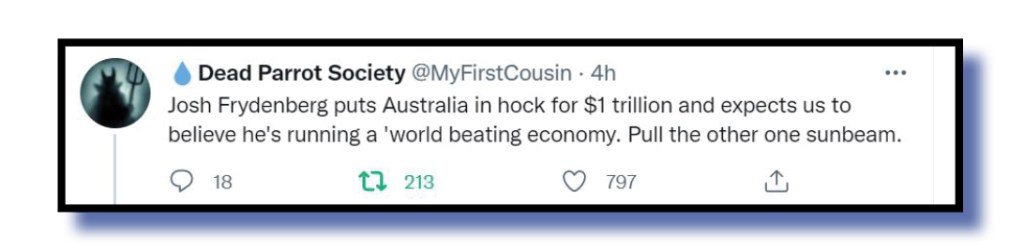 Coming at the current member for Kooyong and the current Australian Treasurer from a different angle was Dead Parrot Society @MyFirstCousin…