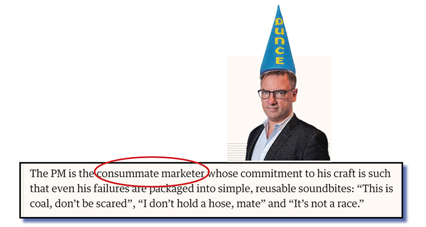 Nothing what Morrison got up to in 2019 should ever be branded in any shape, manner or form as “consummate” marketing.