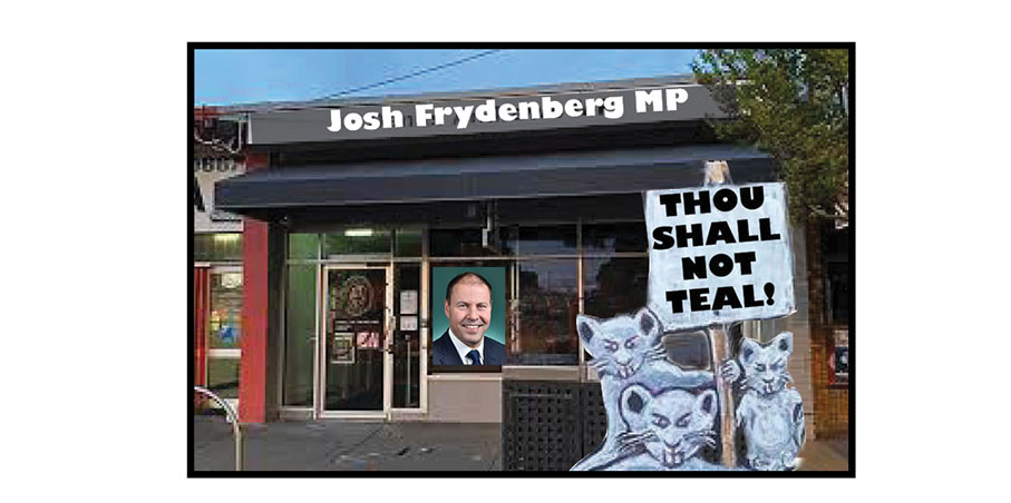 A mischief of angry Twitter sewer rats has began a permanent protest vigil outside the Melbourne electorate office of Josh Frydenberg, further damaging the federal Treasurer’s chances of re-election at the looming poll.