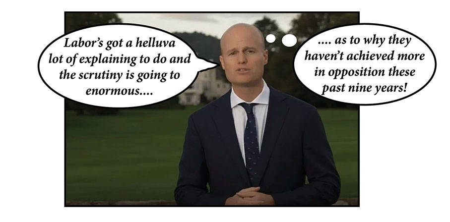 To the MGH, Tom’s words sounded just a little too one-sided; supporting, albeit covertly, the LNP propaganda line that Anthony Albanese and Labor were a blank page, a policy-free zone that needed.. well, a damn-good scrutinising. Was that the thinking – or hope – behind your chosen words, Tom?