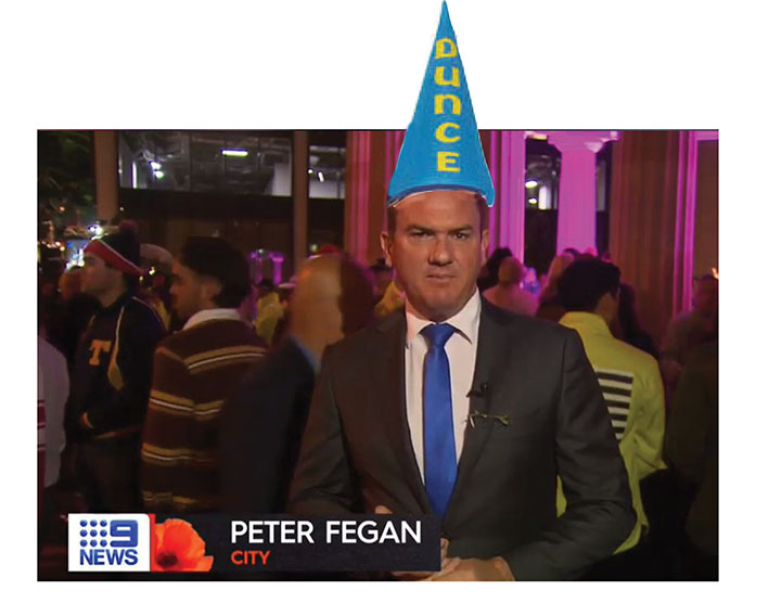 It’s most likely a slip of the tongue but we’ve put the dunce’s cap on Peter for not giving the piece a final check and run through. And is he totally to blame anyway? Who the fuck was in the production booth with Peter when the piece was put together? Not one producer available? Just the technician? Does Nine still have producers?