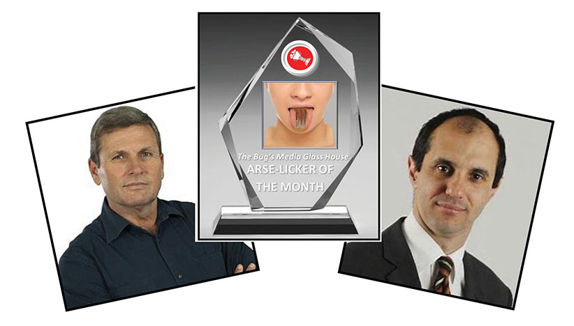 Two of Australia’s finest journalists – both with Nine Entertainment Co. – have been declared joint winners of the prestigious The Bug‘s Media Glass House Arse-Licker trophy for the month of April.