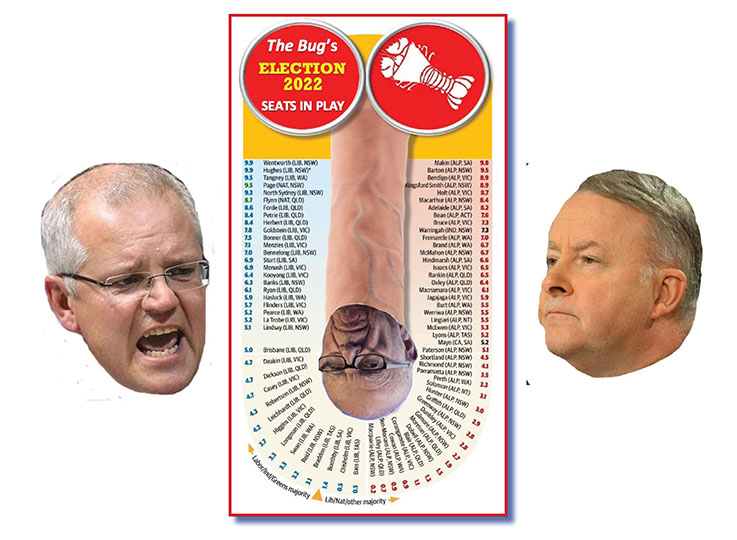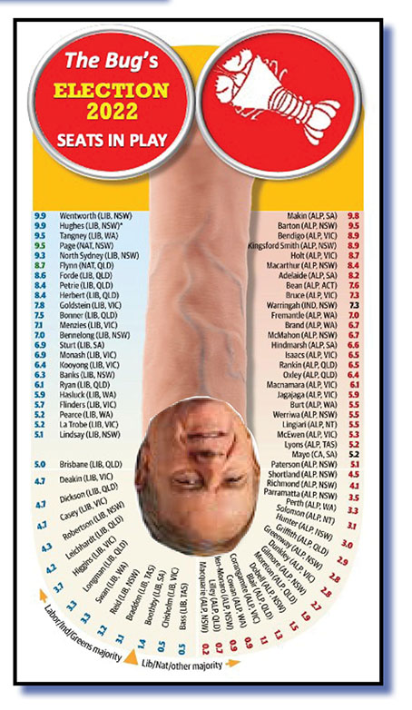 Inventor of the world-recognised The Bug big swinging dick electoral pendulum, The Bug‘s inhouse amateur psephologist Don Gordon-Brown, can’t see things improving for the Morrison government in the short term.