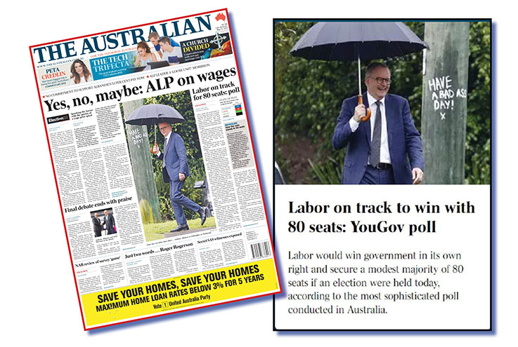 As you can see over on the right of the paper’s front page today (above) The Oz is reporting the results of what it claims is the most sophisticated politics poll ever conducted in this country and it must have pained the paper’s editors greatly to have placed it there.