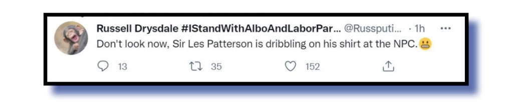 During the week, Barnaby Joyce spent quality time at the National Press Club convincing the undecided voters out there of the need for a change of government. Russell Drysdale #IstandWithAlboAndLaborPar… @Russputi.. obviously took a bullet for the rest of us by watching the televised event.