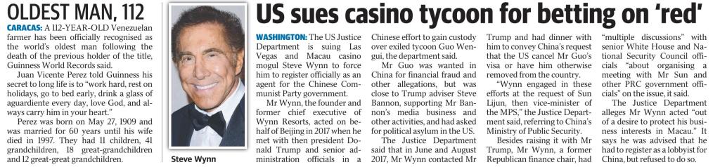 Yes, the man in the photo, US casino operator Steve Wynn, may be old, but not that old.