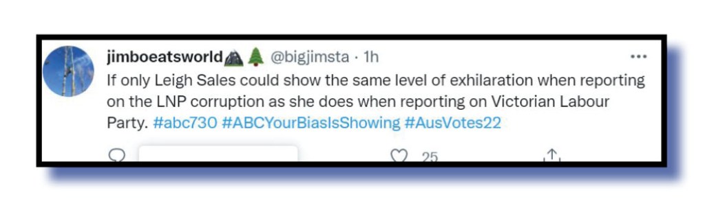 Aunty wasn’t blameless, as Bronwyn Clark @BronwynHill1 explained. Well, okay, she maybe was referring to the post-election period but we’ll take a punt that it was a general observation over recent months.