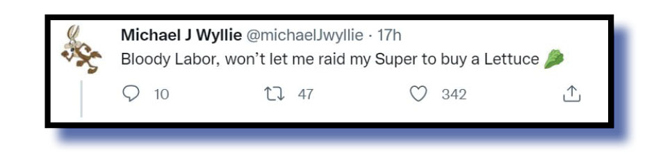 And, finally, tweets about the media. Lollygagga @Kamaji60234923 had this heartfelt message for Phillip Coorey of The Australian Financial Review.