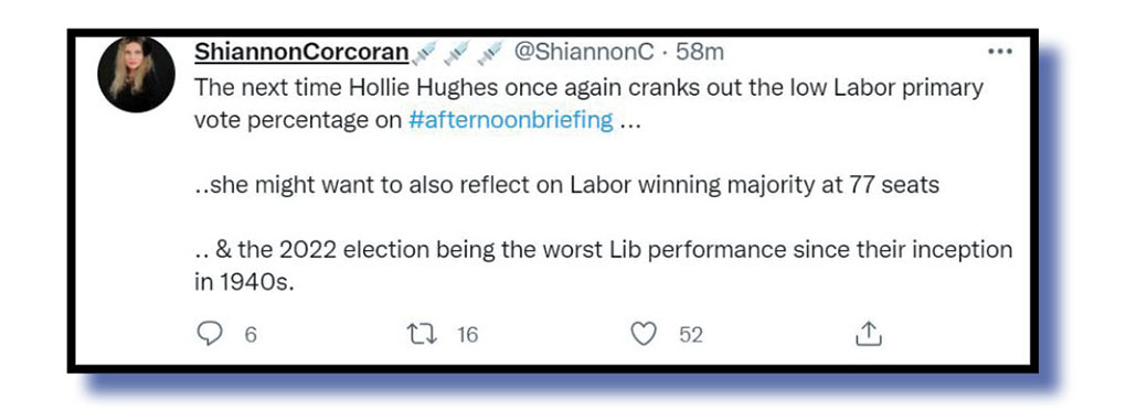 Back to politics briefly, with this offering from this nice little hit on Hollie Hughes from ShiannonCorcoran @ShiannonC