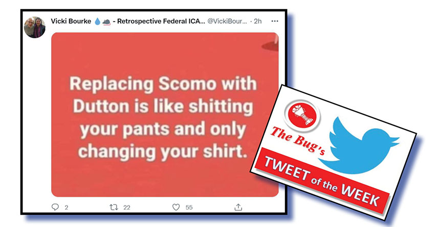 It’s why The Bug‘s tweet of the week judges couldn’t go past the offering (at top and below) from Vicki Bourke – Retrospective Federal ICA @VickiBour…. whatevers!