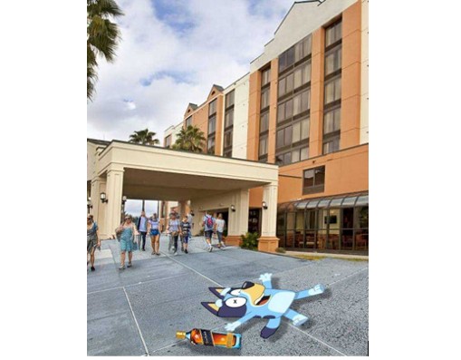 However, I will explain that most of yesterday remains a blur, although I do recall that just after breakfast yesterday during our bar-hopping Karl and I chanced upon one of the ABC’s many Logie winners, Bluey, sprawled on a footpath in Surfers Paradise. (main picture)