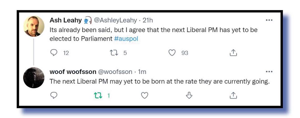On the LNP in Opposition generally, Ash Leahy @AshleyLeahy and woof woofsson @woofsson had this exchange on Australia’s next Tory PM.