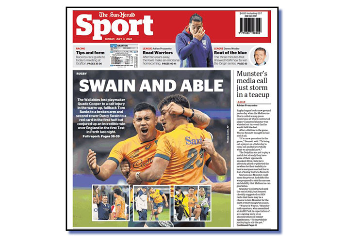 Let’s start with this morning’s main sports heading on the back page of The Sun-Herald.
